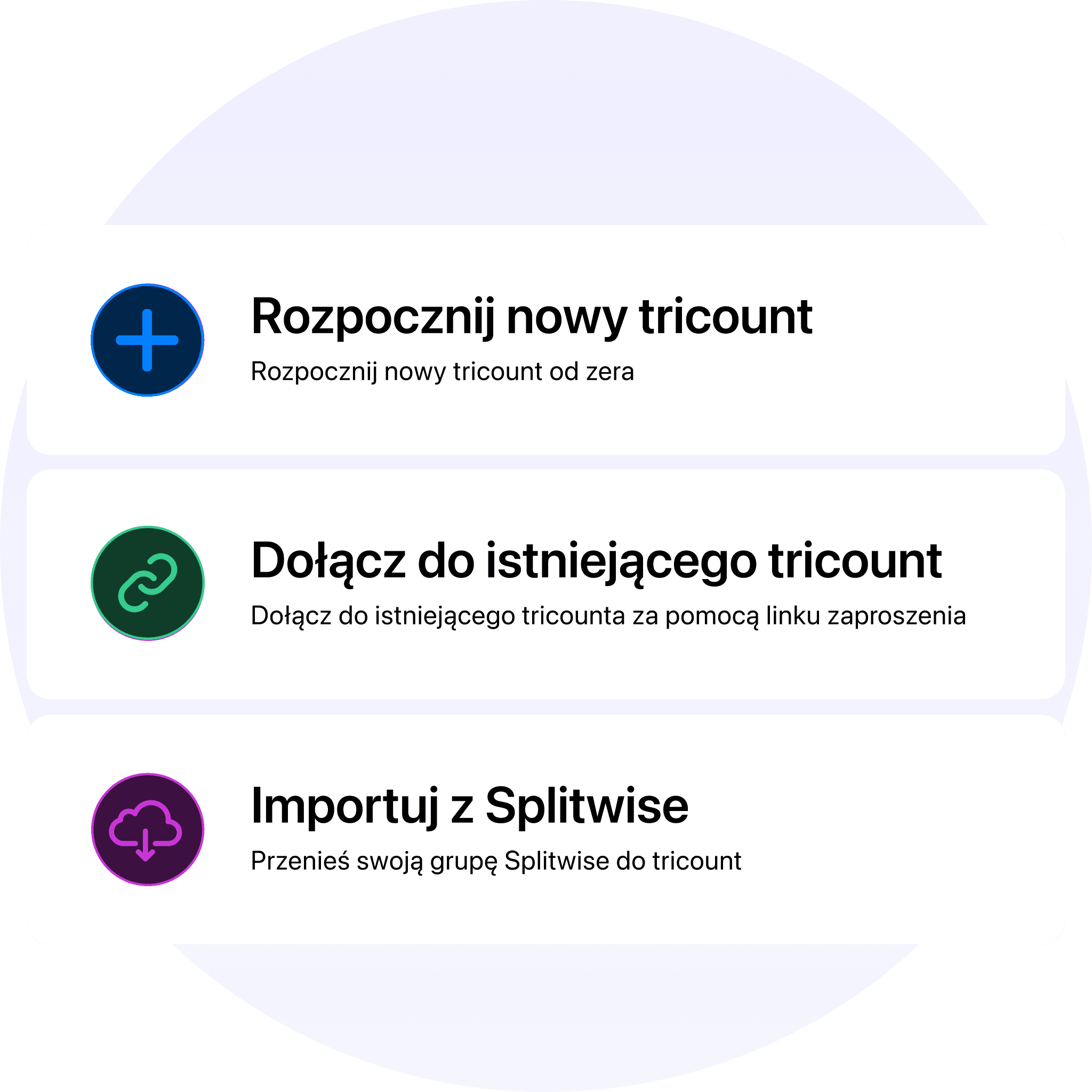 Ułatw sobie przejście do tricount. Dzięki naszemu importerowi Splitwise możesz przenieść swoje obecne grupy, wydatki i salda bezpośrednio do tricount — w zaledwie kilku prostych krokach.